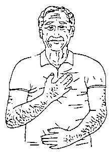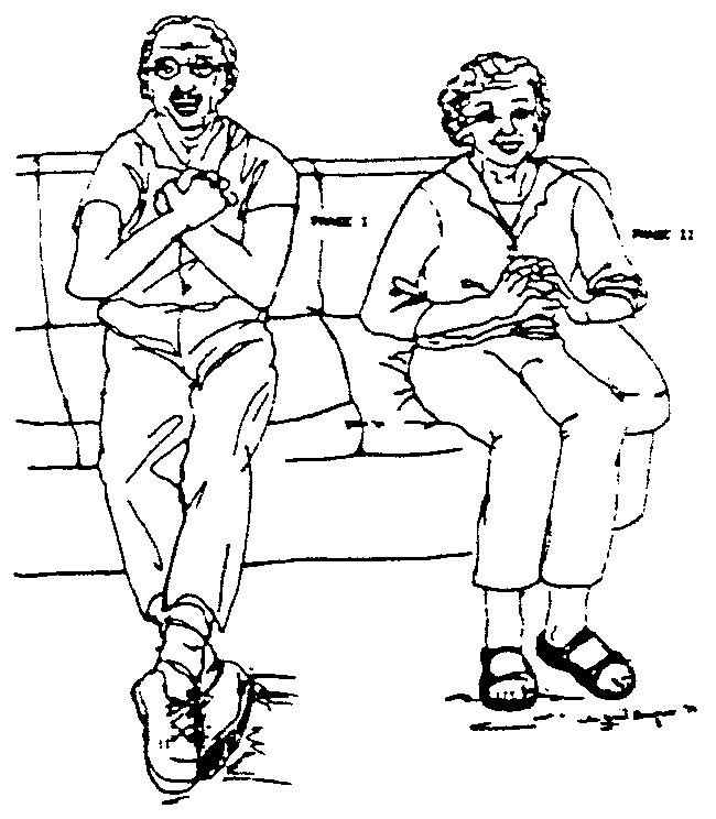 Mano derecha sobre la rodilla izquierda, luego mano izquierda sobre la rodilla derecha.