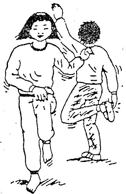 Se puede realizar también tocando en un movimiento hacia atrás mano derecha con pié izquierdo y viceversa